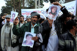 The crowd claimed 13 Afghans who had crossed the border into Iran were seized and later shot dead by Iranian security forces about three months ago.